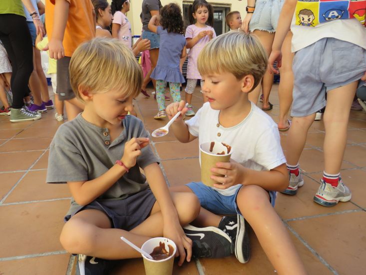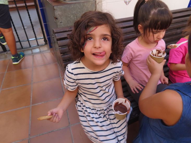 Però les festes de la Mercè també omplen de vida l’escola: sortides, explicacions, vídeos, dibuixos, cançons..., un ampli repertori que ens ajuda a entendre i gaudir la nostra Festa Major. El divendres 22, el pati es va omplir de festa. Jocs per a tothom, racó de pintar cares, música per ballar sense parar, xocolata desfeta... Un no parar.