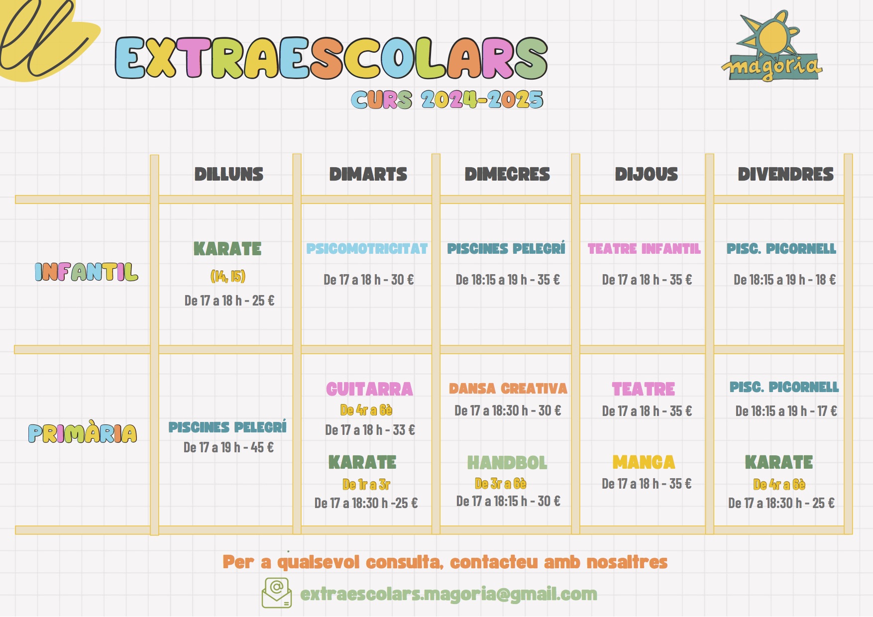 Aquí podeu veure i descarregar l'oferta d'extraescolars que s'organitzen des de l'escola.