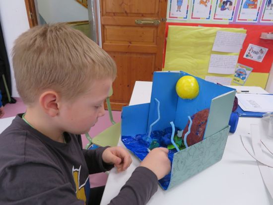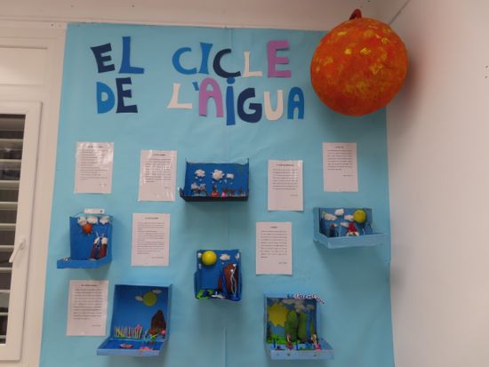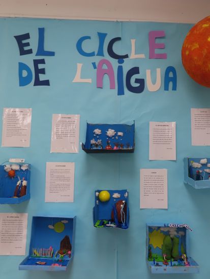 A classe, amb tota aquesta experiència, vam començar a descobrir que l'aigua fa un recorregut que anomenem el cicle de l'aigua. Hem fet unes maquetes per grups on hem mostrat aquesta vida cíclica que té l'aigua.