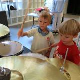 A més, al final de tota de la sessió i per acabar de rematar aquest matí, la Laia ens va deixar tocar la bateria a cadascun de nosaltres.