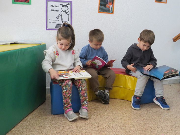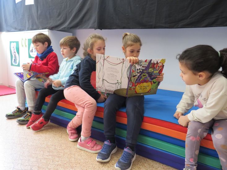 Quan arriba Sant Jordi, a Infantil tenim una setmana molt moguda, plena d’aventures i fantasia! Transformem la sala de psicomotricitat en una biblioteca plena de contes i llegendes que mirem i expliquem tots plegats; fem roses i punts de llibres per regalar; veiem i escoltem la llegenda de Sant Jordi i totes les versions possibles que hi ha, i descobrim que la princesa també pot ser valenta i no necessita ningú per combatre el drac. Finalment, convidem unes persones molt especials, alguns dels nostres avis i àvies, que ens venen a explicar contes.