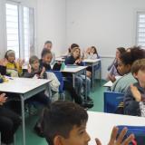El passat divendres 8 de novembre, a venir el Walid, pare d’un nen de la classe, que és de Jordània i viu el conflicte de manera molt propera i intensa. Entre el Walid i el Dani, van poder descobrir els orígens i l’evolució del conflicte, fer una anàlisi adequada a l’edat i atendre les inquietuds i dubtes que pot tenir un/a nen/a de sisè de Primària. Havíem previst una hora de monogràfic, que es va convertir en dues, atesa la qualitat de les explicacions del Walid i l’interès mostrat per tota la classe. Malgrat la complexitat del tema, van sortir amb les idees prou clares i, sobretot, amb ganes de resoldre el conflicte i poder viure en pau.