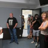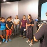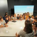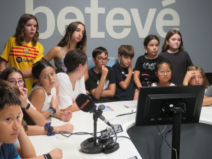 Primer, vam anar al plató 1, que era el més gran de tots, amb moltes càmeres i focus. Després, ens van portar al plató 2, que era una mica més petit. Allà l’Eva Arderius (presentadora del “Bàsics” i cap d’informatius) ens va explicar com funciona un prompter. També vam veure l’estudi de ràdio i la sala de control.