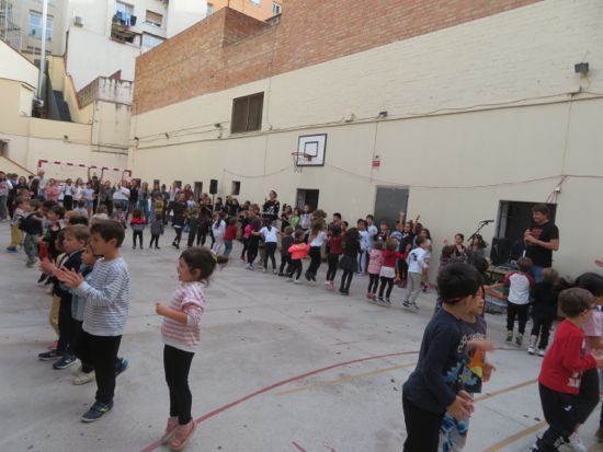 Ah, i no oblidem la bonica dansa que vam compartir al pati! Els nens i nenes d’Infantil van formar una rotllana al mig del pati per interpretar el ball de la Castanyera (Quan ve el temps de collir castanyes, la castanyera, la castanyera...), mentre que els de Primària feien una rotllana al voltant i acompanyaven els més petits amb la mateixa coreografia.