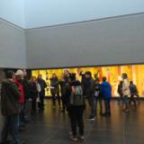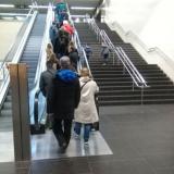 A les deu del matí, ens hem trobat a la plaça Europa, on hem baixat a l’estació i hem agafat el metro fins al final de la línia a la Terminal 1 de l’aeroport, tot fent parada i visitant diverses estacions del recorregut. Cada família portava un dossier explicatiu de l’obra d’aquest tram de l’L9, amb un plànol per a situar-se en cada moment. Aquest, probablement, no és un tram corrent de la xarxa de metro de Barcelona, i la rutina d’anar amb metro s’ha convertit aquest dia en una experiència única, en un seguit de descripcions, històries, anècdotes desconegudes per la majoria. Destacadament, hem pogut constatar i comprendre les diferències de disseny de les estacions i les motivacions dels seus projectes arquitectònics. Des de les que busquen l’agressivitat del formigó a la vista (efecte cova!), les que s’inspiren en una pedrera de Mallorca fins a la de la Fira, que ens parla de la Mediterrània i també la passarel·la sobre les vies de l’AT2. Les paraules dels arquitectes parlant de les motivacions dels projectes i repetides pel nostre guia ens han fet comprendre com són les estacions i què podem trobar-hi, molt més enllà del poc que veuríem en una quotidiana pujada al metro. I a més del sentit, hem vist i entès tot de petits detalls estètics i de construcció. Hem vist l’interès de la perfecció en el detall d’unes ceràmiques exactament alineades des del terra, a les parets i fins al sostre. O la vistositat d’uns panells il·luminats per darrere com si fossin vitralls i les fotografies d’abans i d’ara de la ciutat on s’ha fet l’estació. Ens hem adonat de l’ús de les dimensions, els colors i la claredat de les ceràmiques que cobreixen parets i columnes, i dels millors llocs on podem contemplar la profunditat dels espais o la grandesa dels volums.