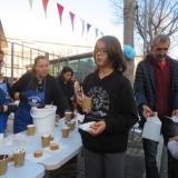 Vam muntar una paradeta davant del Centre Cívic Font de la Guatlla per compartir aquesta noble iniciativa amb el barri. Una activitat oberta a tothom qui hi volgués col·laborar: un got de xocolata desfeta (ben calenta i de la bona) amb un paquet de galetes per omplir la panxa de solidaritat.