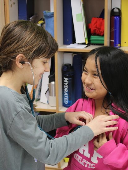 També ens ha portat diverses mostres del material que fa servir en algunes de les seves operacions, com ara una pila de marcapassos o una vàlvula artificial. Am més, amb els estetoscopis, ens hem pogut escoltar el nostre propi cor!