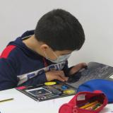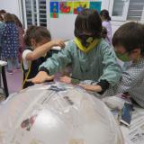 A l’àrea de Coneixement de medi, hem estudiat els planetes, el Sol, les galàxies, les constel·lacions..., hem viatjat per l’espai i hem treballat el sistema solar. Hem fet un treball d’investigació, per parelles, sobre algun tema curiós del sistema solar. A més, a l’àrea de Plàstica, hem aprofitat per construir planetes, el Sol, la Lluna..., i hem ambientat la classe com si estiguéssim a l’espai.