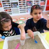 A partir de l’aparició d’unes petjades enormes per tot Parvulari, els nens i nenes de P3 van començar a investigar de qui podien ser: “Són d’un drac?”, “No, d’un lleó...” “D’un dinosaure!”