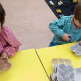 La setmana passada, aprofitant que era la festa de la Castanyada, vam preparar els nostres panellets, i quins panellets ens han quedat! El primer que vam preparar van ser les oueres, que vam pintar platejades i daurades. Una vegada ben pintades i envernissades, ens vam endinsar en l’elaboració dels deliciosos panellets. Hi havia de quatres tipus: de pinyons (amb mongetes banques), de moniato amb coco (arròs), de xocolata amb cirereta confitada (amb un cigronet pintat de vermell) i l’últim de xocolata (amb llenties). Quan els vam agafar, els vam posar en les nostres oueres per poder dur a casa els nostres riquíssims panellets.
