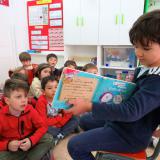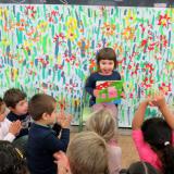 Els infants de l’escola han viscut amb il·lusió tots els preparatius i, és clar, han donat especial importància als contes i històries en aquesta setmana. Cadascú va portar 2 o 3 contes de casa que va compartir amb els seus amics de classe a la biblioteca especial de Sant Jordi i no tan sols això, també van triar el seu preferit i el van explicar als amics.