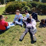 Ha estat una setmana intensa i plena de coses a fer i el tancament va estar a l’altura tot mirant contes en un ambient inigualable: la natura. Vam anar al parc i alguns van jugar a dracs que salvaven cavallers, santes Jordines que lluitaven, dracs mandrosos, princeses valentes i altres personatges inspirats en les llegendes alternatives que hem estat escoltant i mirant al llarg de la setmana.