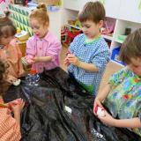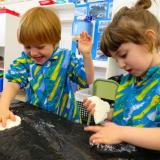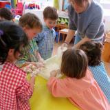Un cop feta la massa, la vam dividir en quatre taules, i cada grup hi va afegir un color diferent. Ens ho hem passat molt bé experimentant!
