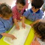 A la classe d’I3, tots els infants hem fet un experiment molt divertit: hem barrejat maizena amb condicionador de cabell i hem aconseguit fer plastilina casolana.