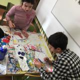 Per treballar-lo a la classe de plàstica, vam realitzar unes màscares africanes i uns autoretrats en què cadascú va fer una part petita de l’obra.