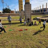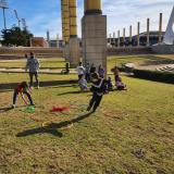 Aquest dimecres vam anar a un dels immensos espais oberts que ens ofereix Montjuïc per fer esport. Ens vam endur material esportiu de l’escola i vam organitzar unes petites olimpíades amb diferents proves i jocs per exercitar les habilitats motrius dels nens i nenes de 1r i 2n.