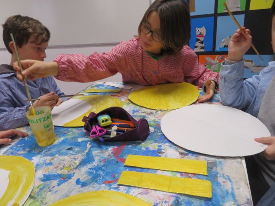 Com ja és tradició, el divendres de Carnestoltes cada classe interpreta una obra de teatre per a la resta de l'escola. Aquestes setmanes els nens i les nenes de 3r i 4t hem estat creant les disfresses per convertir-nos en una orquestra musical. Hem fet violins, violoncels, trompetes, tambors i plats. Ens ha acabat quedant una orquestra ben acolorida i divertida. Ara bé, si voleu gaudir del resultat final... haureu d'entrar a la web d'aquí a unes setmanes i buscar-nos a l'apartat de Carnestoltes!