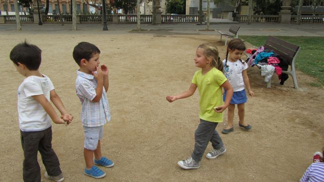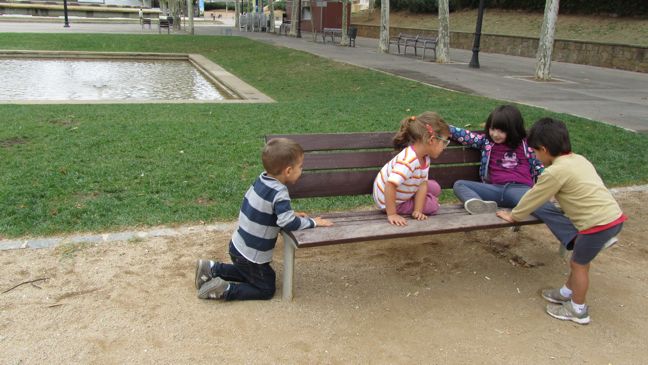Al setembre els nens i nenes de Parvulari i les seves mestres van anar a passar el matí al parc de Mies Van de Rohe. Vam estar jugant tots junts: ens amagàvem darrere dels bancs, fèiem rams de fulles i ens trèiem la sorra que ens havia entrat a les sabates.