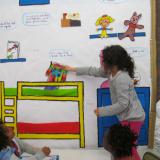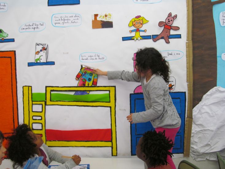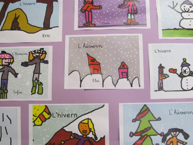 Per introduir el tema vam anar d’excursió al Montseny. A classe vam estudiar el comportament dels animals, els arbres, la roba, els aliments... i amb tota la informació vam elaborar un mural per a la classe. El mural compta amb dos personatges, un nen i una nena, amb els quals els nanos poden jugar. També hi ha un escrit de cada nen parlant sobre l’hivern. Aquí teniu el resultat.